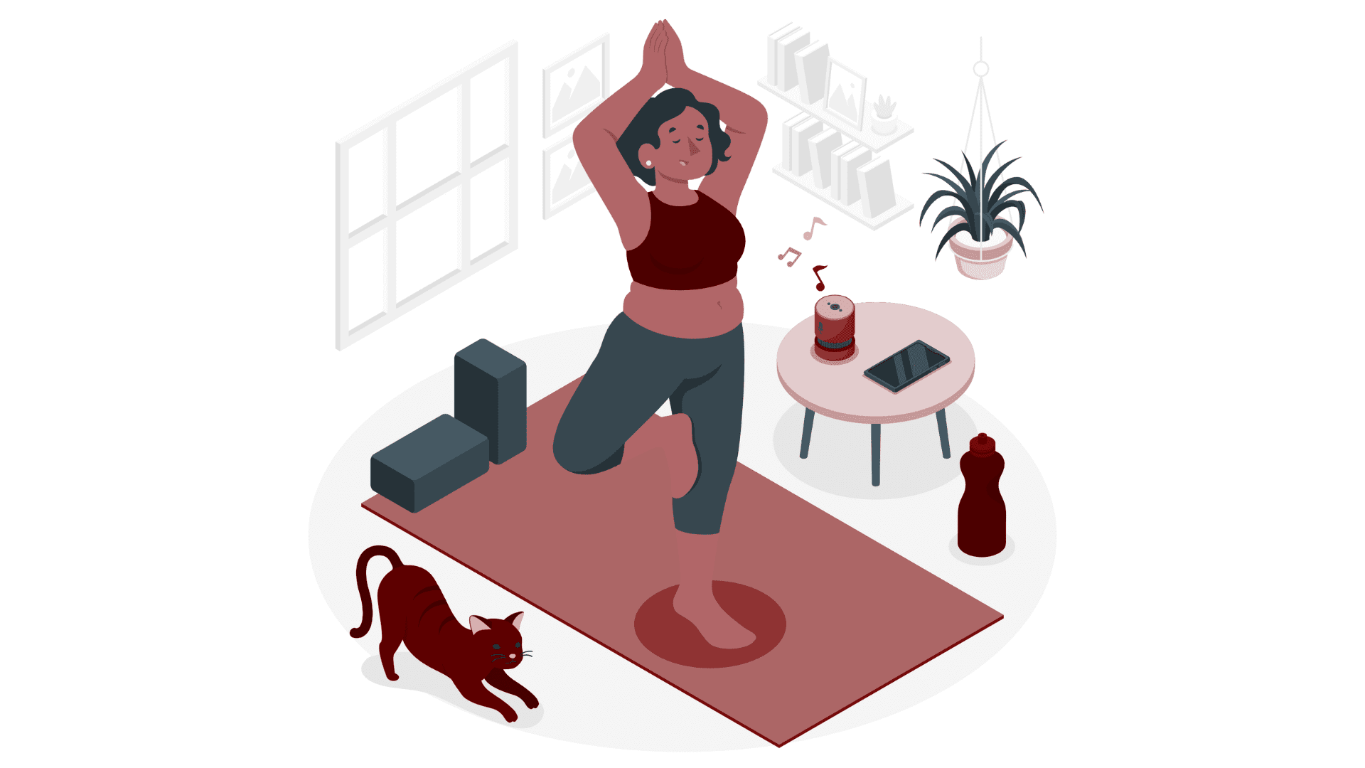 Material: colchoneta antideslizante; opcional: bloque de yoga, banda elástica, aro de Pilates, pelota pequeña.