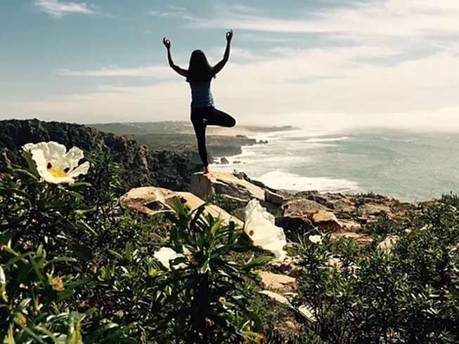 7. Savasana profunda (10 min): Acuéstate en la arena, brazos en cruz y deja que el horizonte disuelva tensiones.